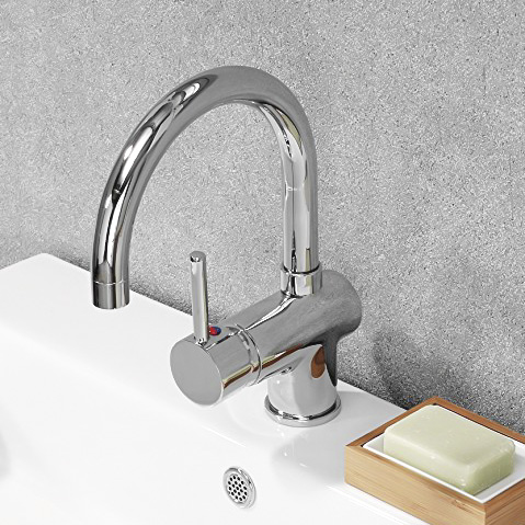 - Bateria łazienkowa chromowana o nowoczesnym wyglądzie z obrotową wylewką oraz jednofunkcyjnym uchwytem.